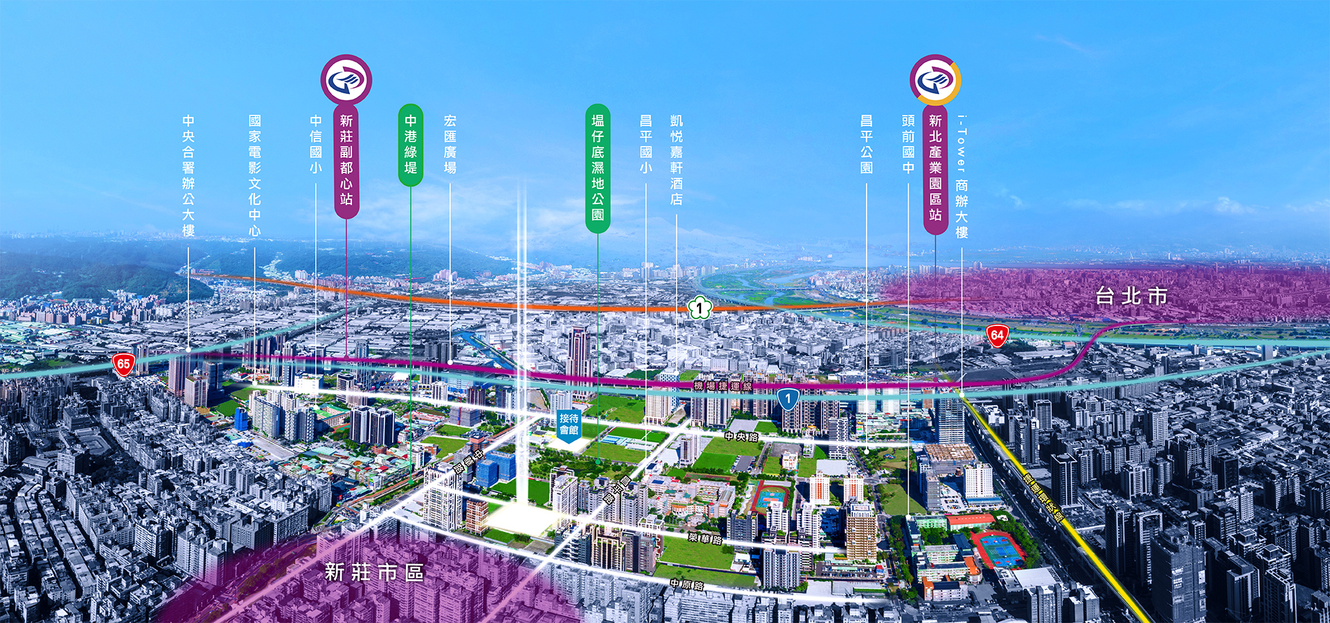 2020年新莊副都心將躍升為國際都市,橫跨交通、消費、產業、影視、觀光等領域